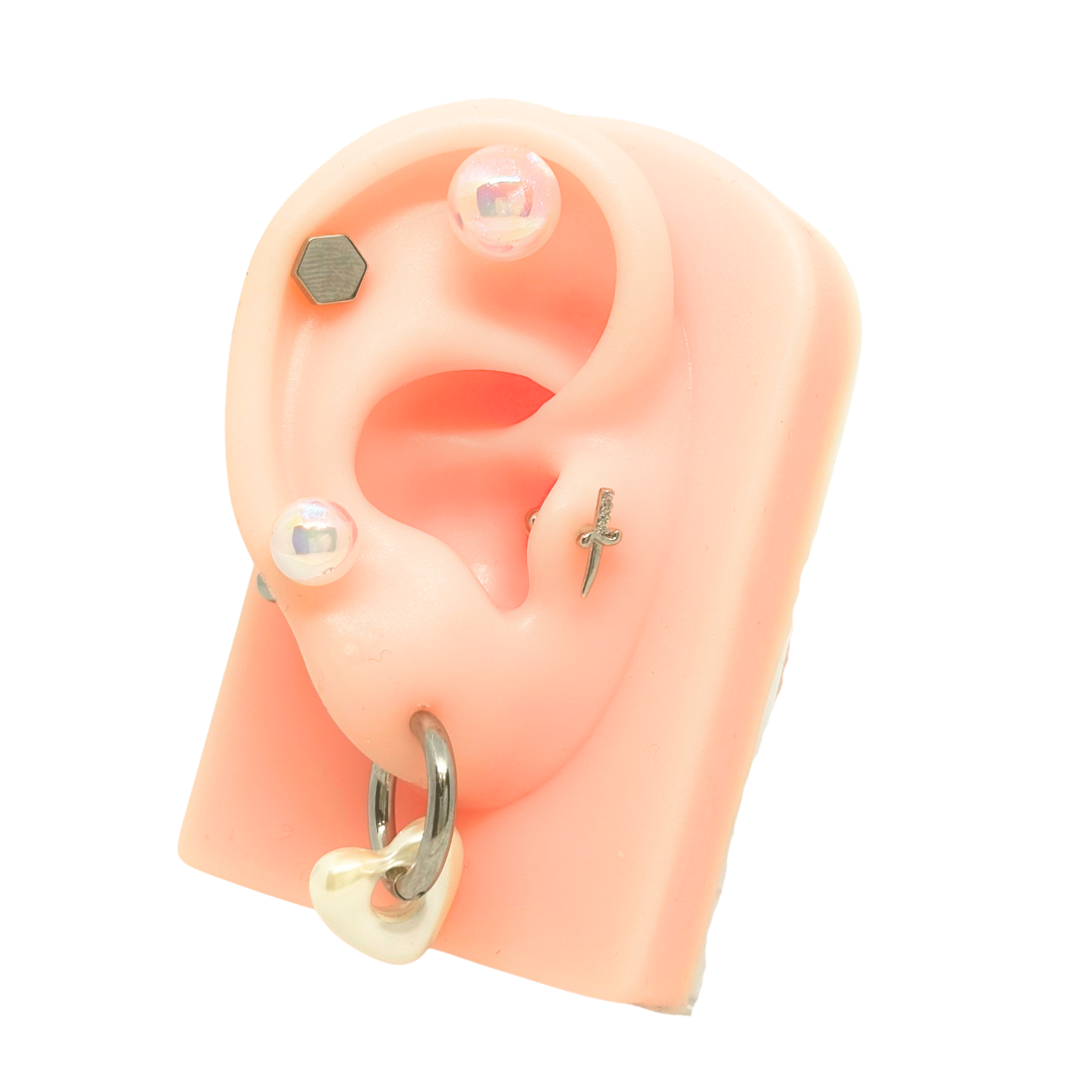 ボディピアスは肌に近いアクセサリーだからこそ素材にこだわりました。金属アレルギーを起こしにくい、医療現場でも使用されるサージカルステンレスを使用しています。肌が敏感な方にも安心して着用いただけます。