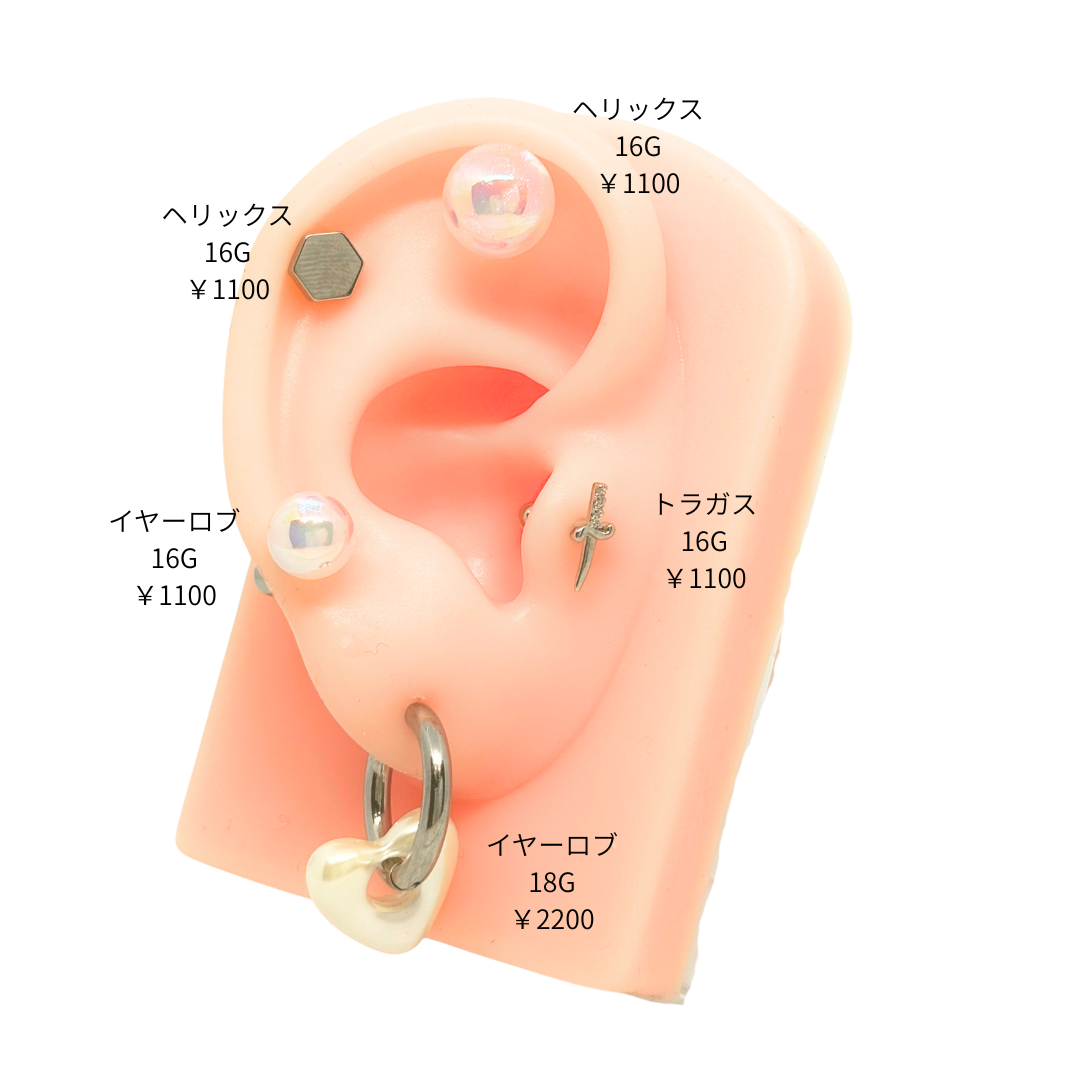 ※基本はフープピアスは18G、バーベルは16G・シャフトは6㎜の商品になります。