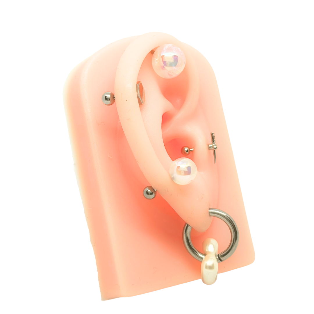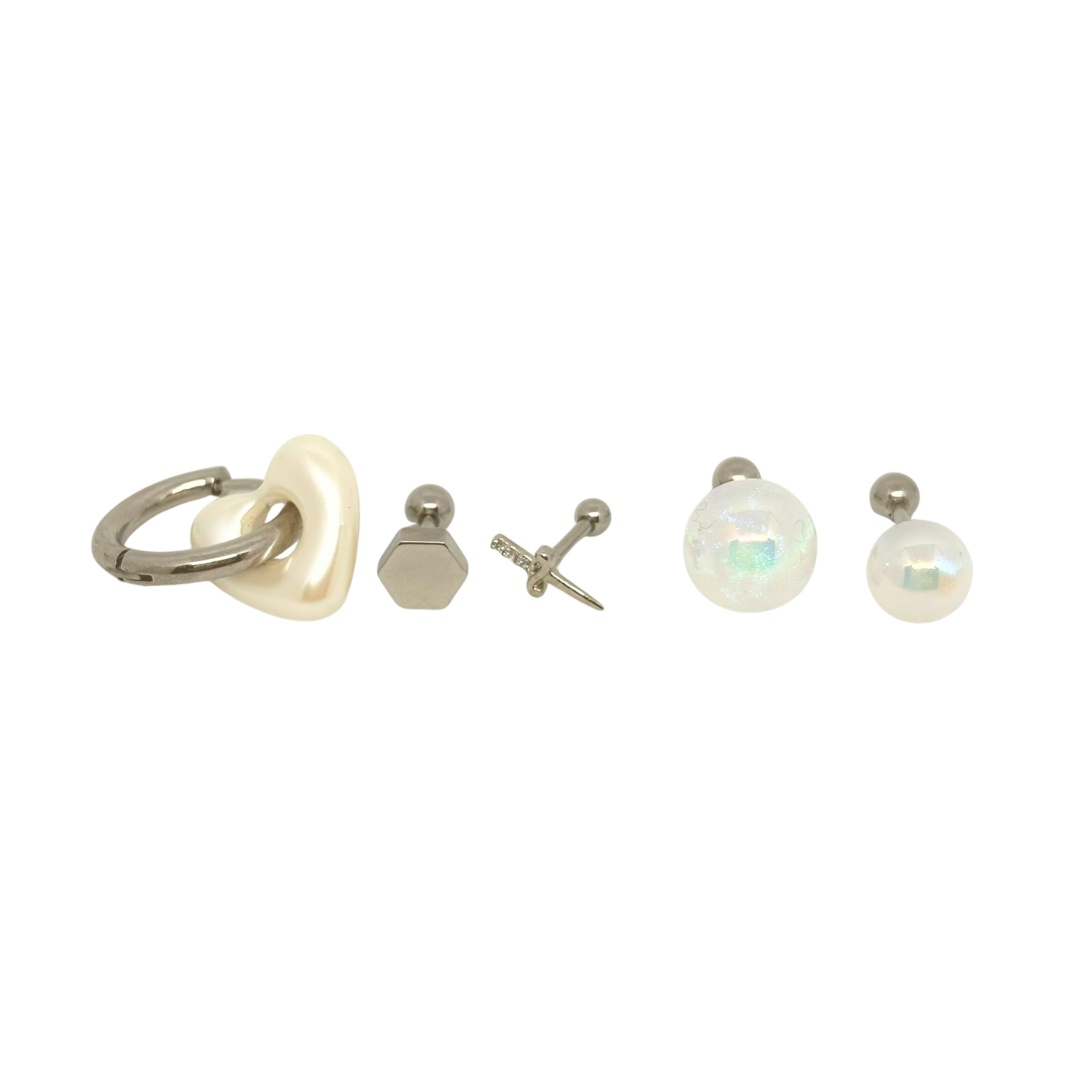 ピアスの穴の数が少なくても、たくさん開いていても大丈夫。パック内のどのアイテムを組み合わせてもテイストがまとまります。