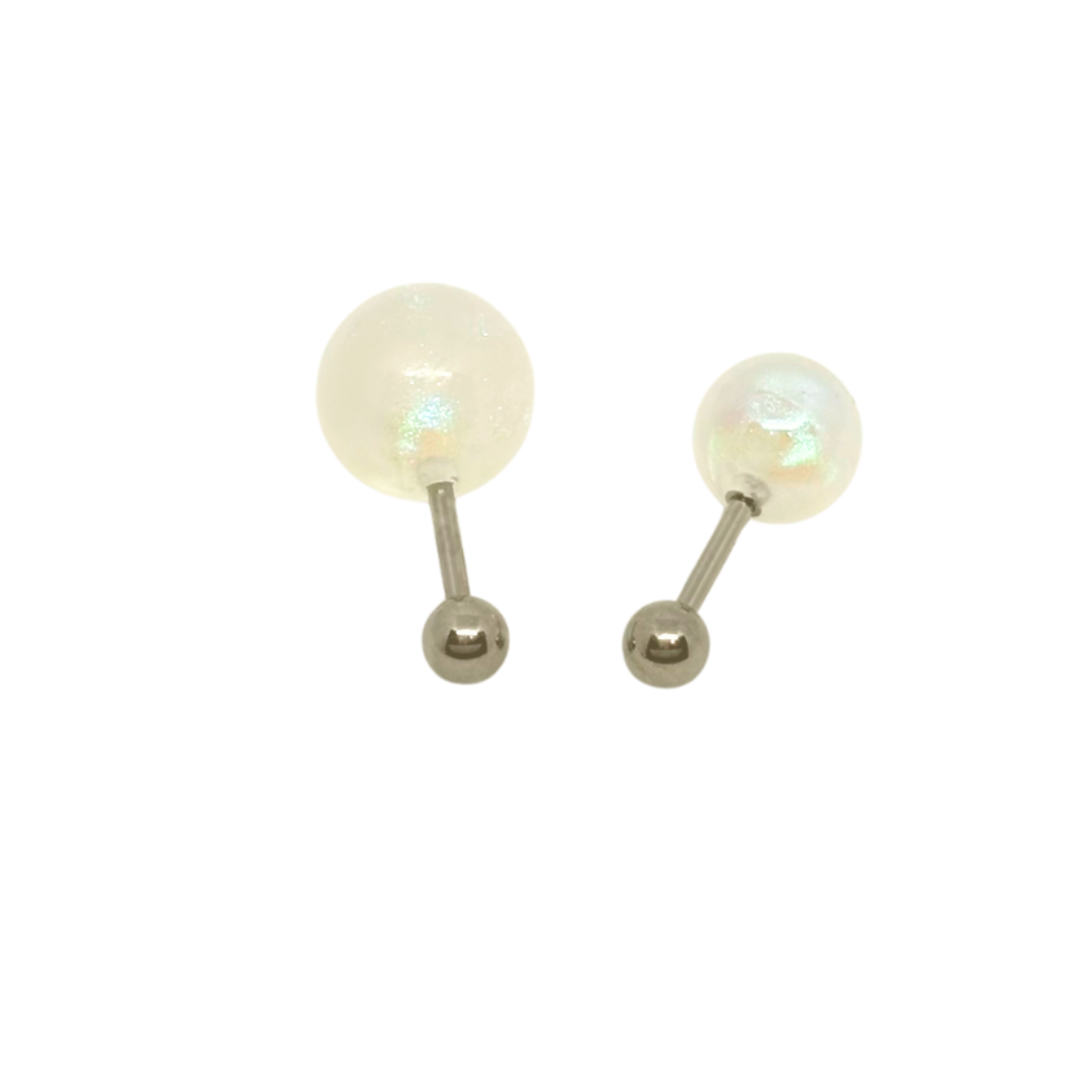 付属品としてバーベル16G8㎜シャフトが2本、ラブレット16G6㎜シャフト1本、ラブレット16G8㎜シャフト1本、16G4㎜玉2個が付きます。ご自分の耳の厚みに合わせて付け替えていただけます。ご不明な点がございましたら店舗までお問い合わせください。